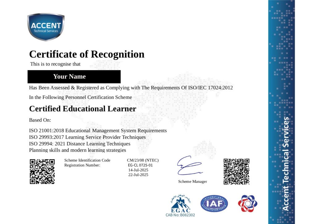 يمنحك اعترافًا دوليًا رسميًا من هيئات اعتماد مرموقة (ISO – IAF – EGAC).
